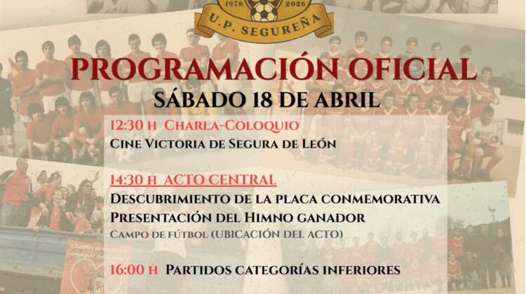 La Unión Polideportiva Segureña celebrará este sábado, 18 de abril, su 50 aniversario con una jornada conmemorativa abierta a toda la ciudadanía, en la que …